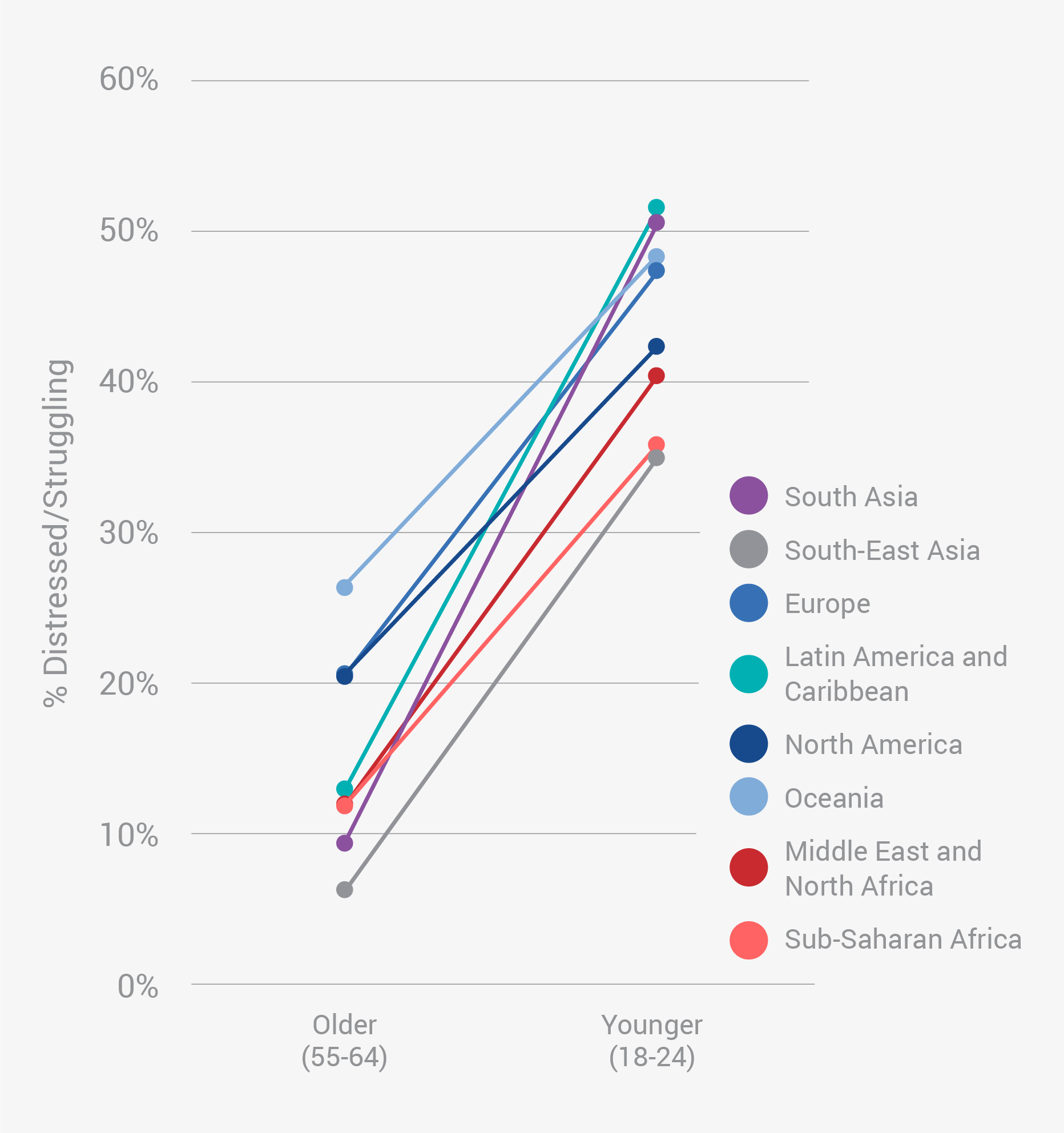 Data from the Global Mind Project shows that mental wellbeing is declining with each successively...
