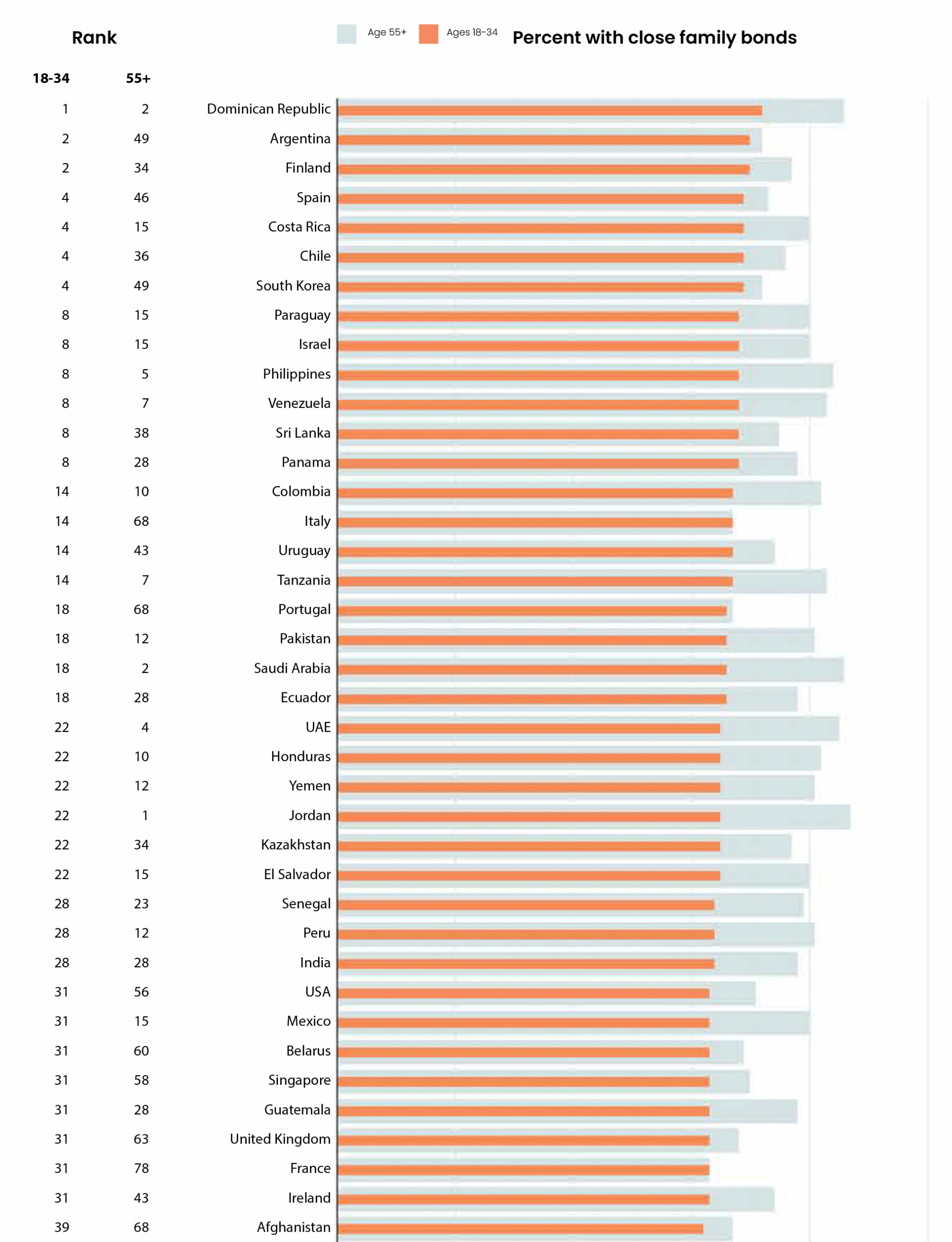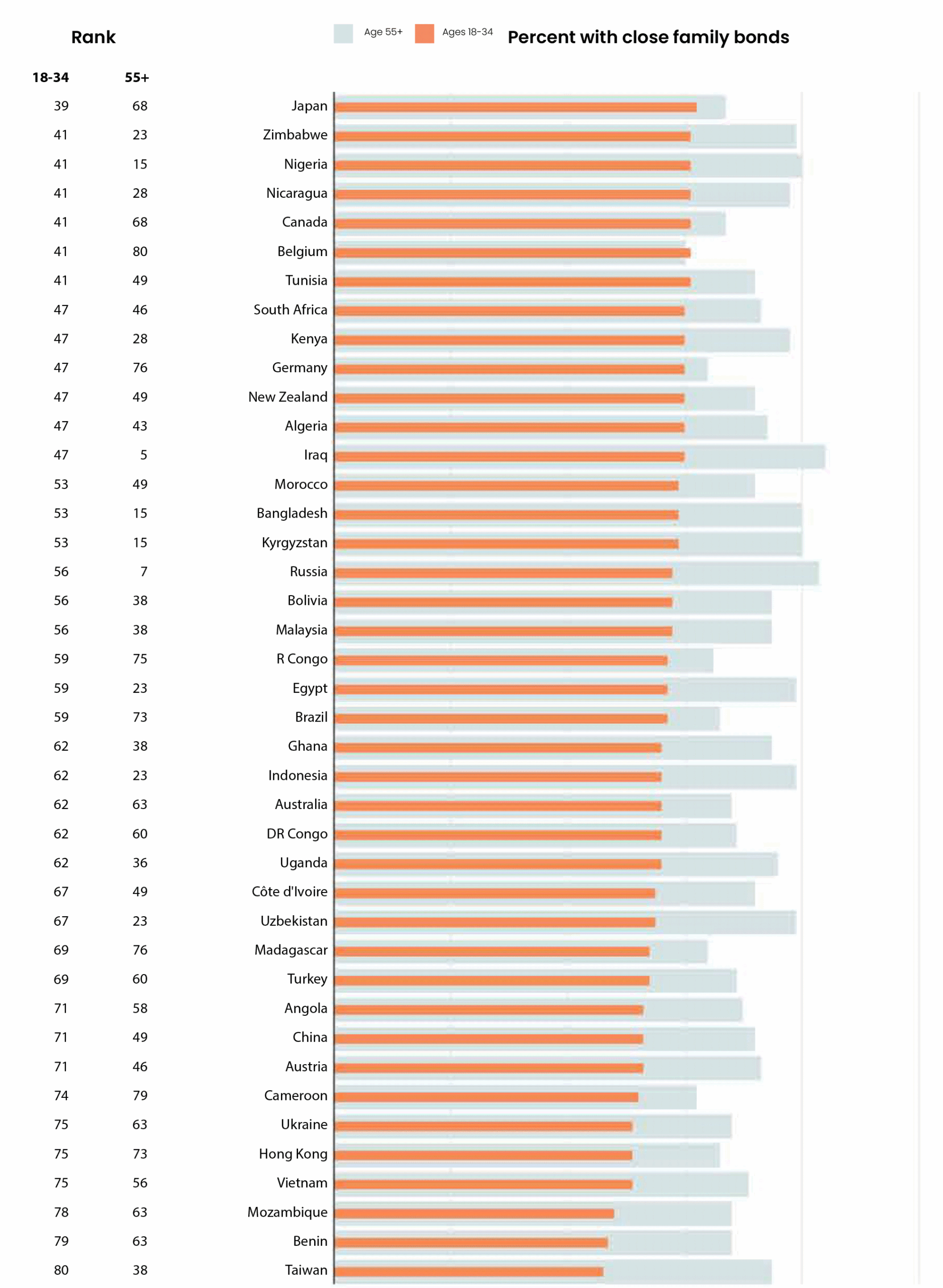 Older adults are twice as likely to be close to many of their adult family members as the youngest adults