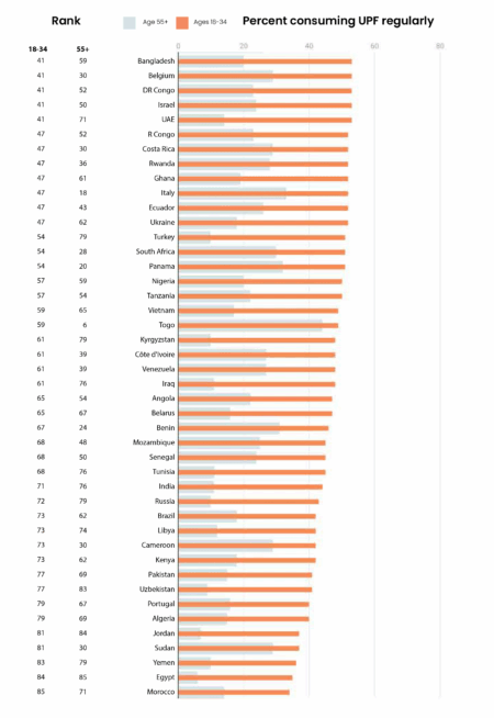 Percent of individuals regularly consuming UPF by country – a