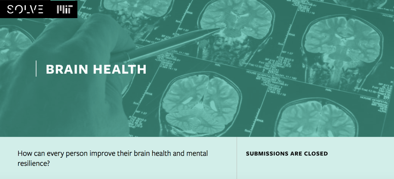 SOLVE is an MIT initiative to connect innovators with the network and resources they need to succeed in solving global problems. They aim to identify the best, most actionable solutions to the world’s most pressing problems, bring these trailblazers together, and create a community of changemakers intent upon piloting innovative solutions. The Brain Health Solve Challenge was an open global call to submit solutions to the issue of brain health and mental well-being. The brain health initiative of SOLVE aims to: